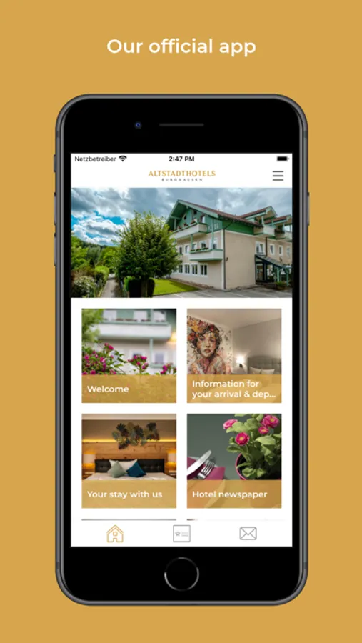 News will be sent to your smartphone or tablet via push notifications and will be published in our hotel newspaper – to make sure you never miss any offers at our Altstadthotels in Upper Bavaria and Austria.