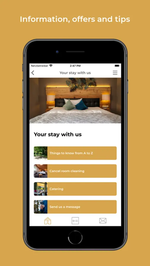You are planning a celebration, want to give away a voucher or cancel room cleaning? Simply send us your message via the app, book online or contact us via the chat feature.