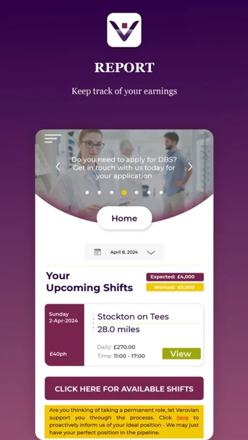When you sign up with Verovian, you can say goodbye to the hassle of searching for shifts on various platforms or worrying about missing opportunities. Our app streamlines the process by providing clear directions to shifts, making it easier for you to navigate and focus on what truly matters - delivering exceptional healthcare.