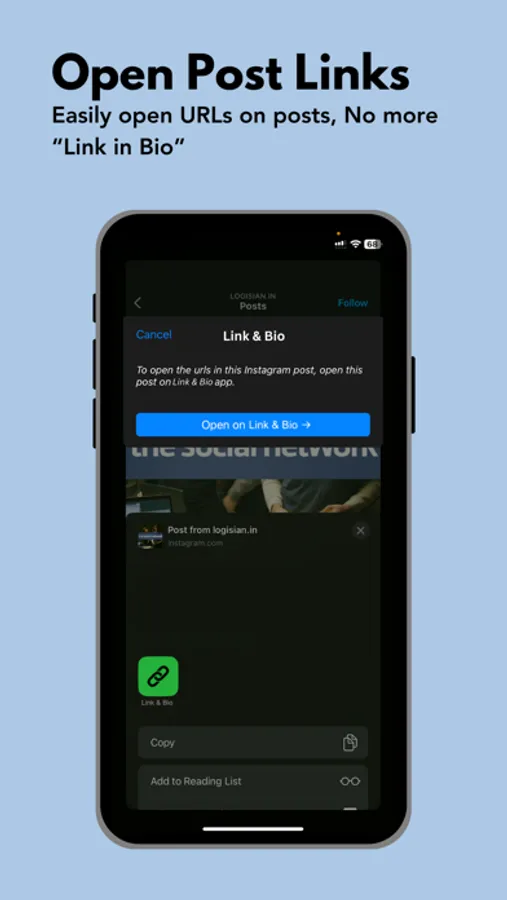 Discover a new level of convenience! With our app, open any link in posts effortlessly. Choose from multiple links and revisit your favorite content easily with link history. It's time to enjoy a seamless social media browsing experience!