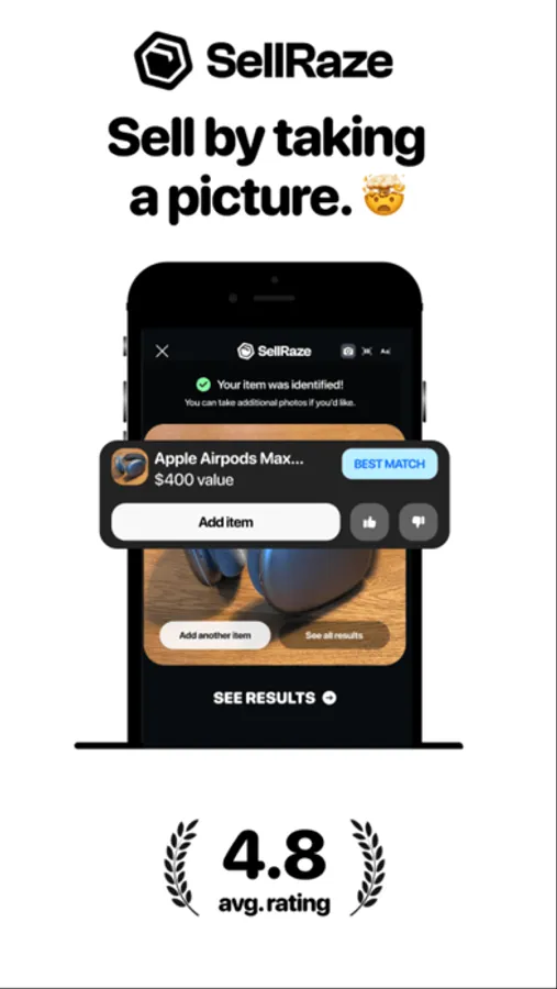 SellRaze enables you to identify, price, and list items from your inventory in seconds. Simply take an image of your items, and toggle your favorite marketplaces to sell instantly.