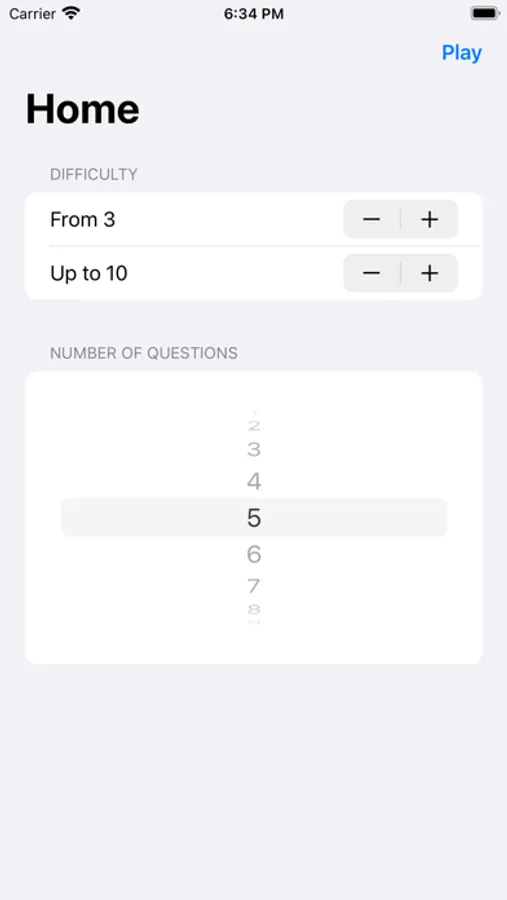 -这是一款允许用户以游戏的形式练习乘法技能的应用程序,因此您首先选择测验轮所需的难度、位置和问题数量,然后开始回答