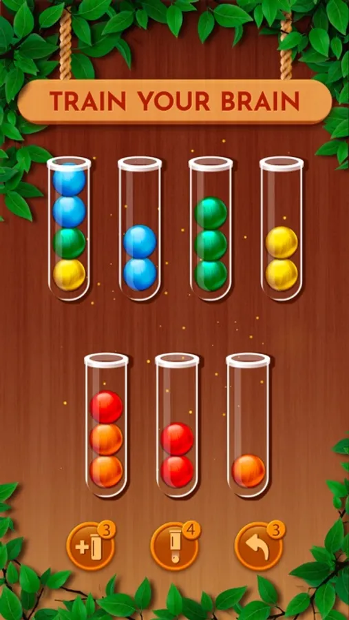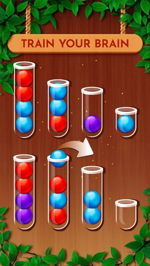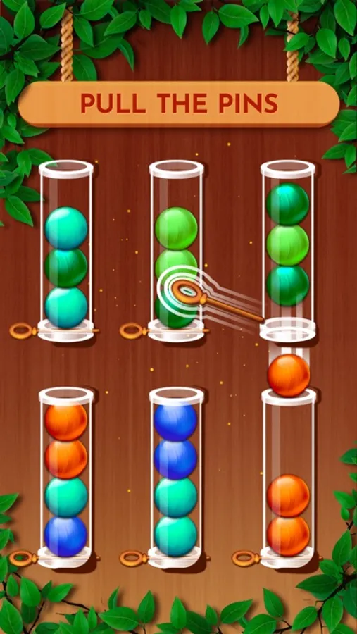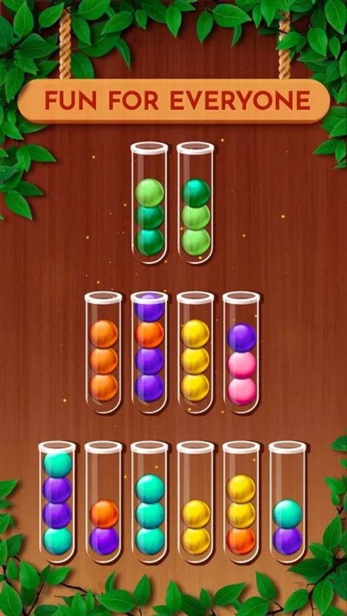 Woody Sort: Ball Sort Puzzle is a simple and addictive sorting puzzle game. Your objective is to fill each tube with the same colored balls. It may sound easy, but there is a twist: You can't put a ball on top of another ball with a different color!