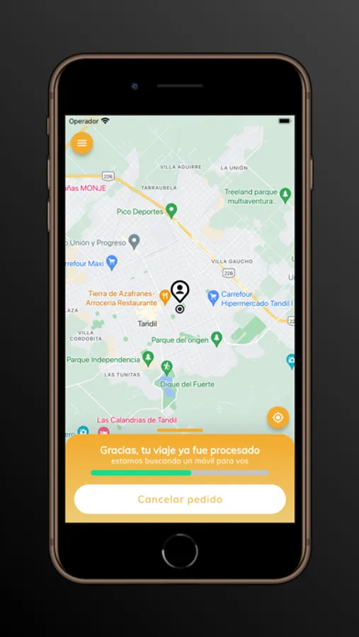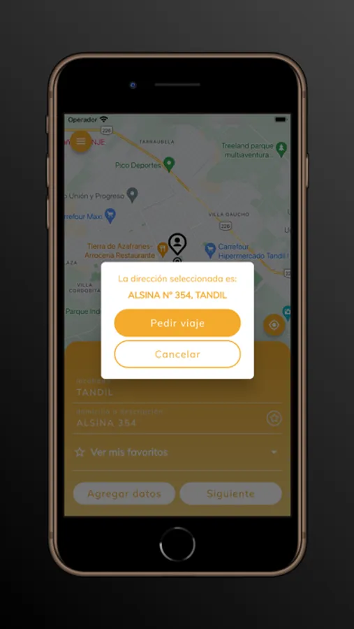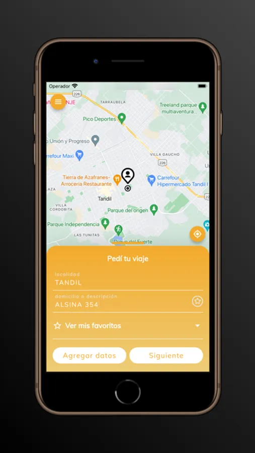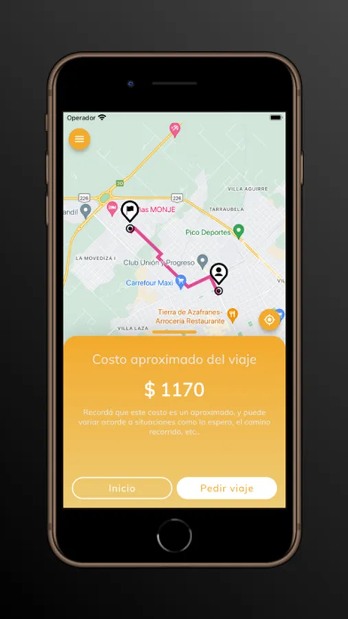 - Solicitud de viajes desde una ubicación elegida sobre un mapa o carga manual de calles.