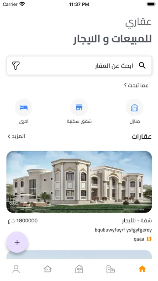 أهلا بك في عقارات العراق٫ تطبيق متخصص في عقار العراق يعرض لك العقارات المتاحه حولك بأستخدام خرائط غوغل العربية