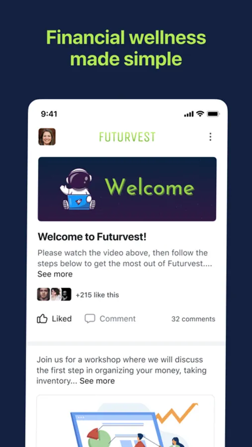 Futurvest is an online wellbeing platform that will educate you, while making it easy to plan, track, and meet your goals so you can achieve a healthy financial future.