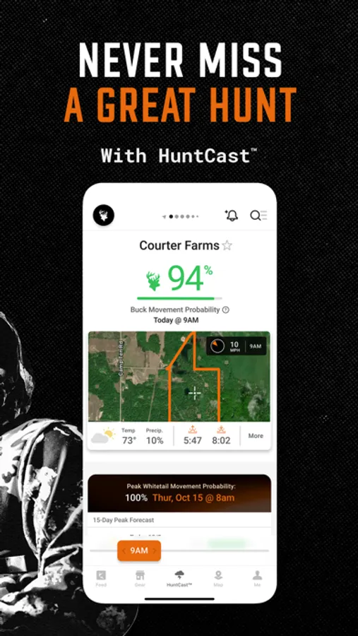 HuntCast’s proprietary algorithm tracks and analyzes key weather variables proven to influence species movement, allowing you to pinpoint, on a day by day, hour by hour basis, the absolute best times to hunt whitetail, turkey, waterfowl, big game, and more.