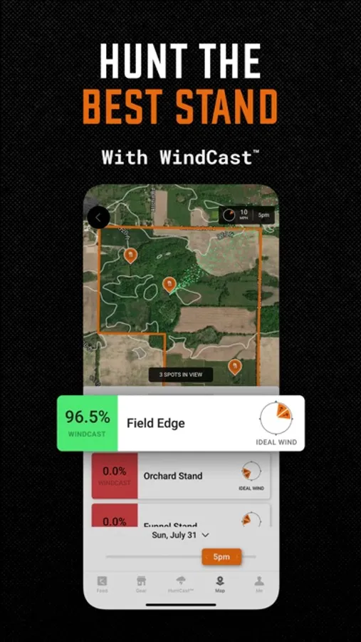 WindCast tracks wind speed and direction at all of your tree stands and pinpoints the best spot to hunt each time you head to the woods.