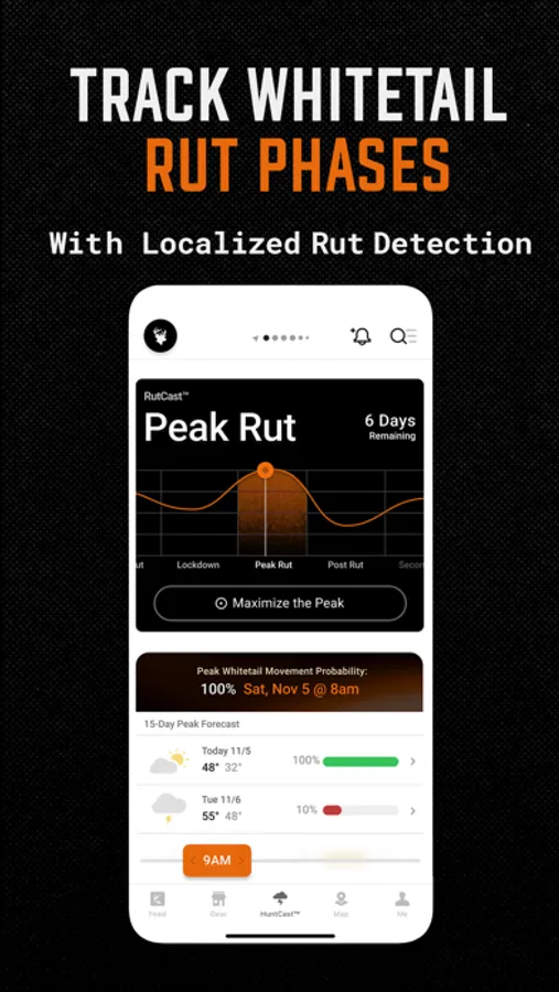 HuntCast Alerts give you a days-in-advance heads up that there’s a great hunt in the forecast, allowing you to clear your schedule and hit the woods at the most opportune times.