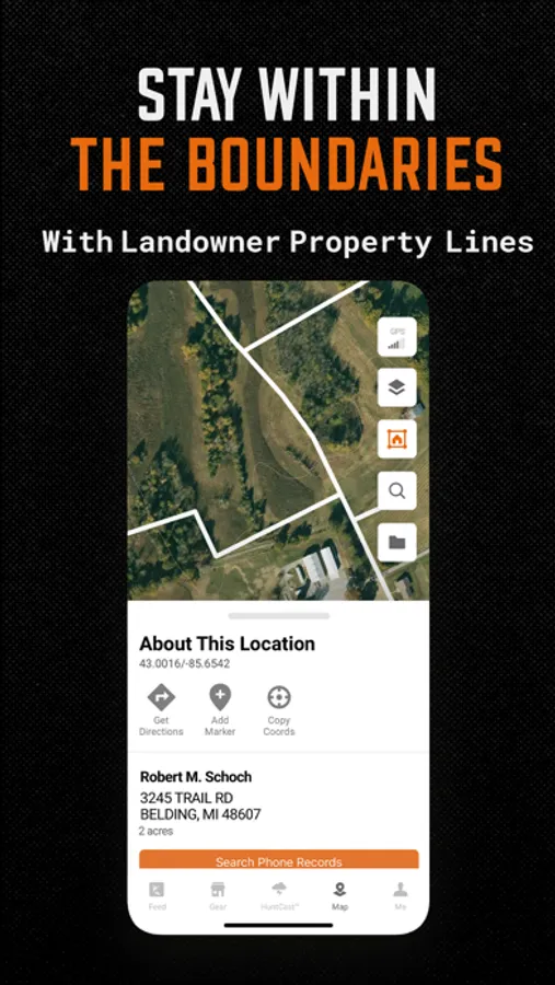 Tap anywhere on our hunting maps to see the name, address, and phone number of the landowner, and more easily gain hunting access or permission to retrieve your harvest.