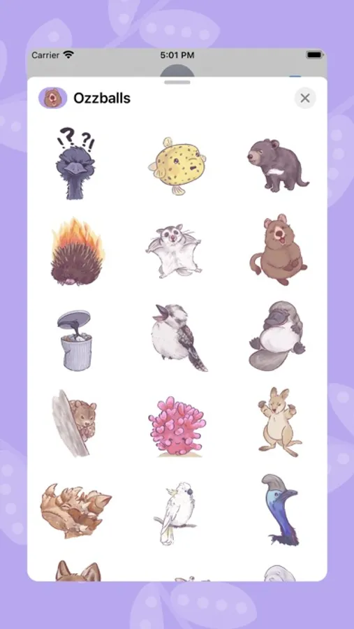 Express your wild side with these cute animated stickers! This sticker set features Australian animals in their cutest and most peculiar moments. From the plucky platypus to the quirky quokka, these stickers will add a touch of whimsy to your chats. Embrace the charm of Australia's unique wildlife with Ozzballs, the cutest oddballs from the Land of Oz!