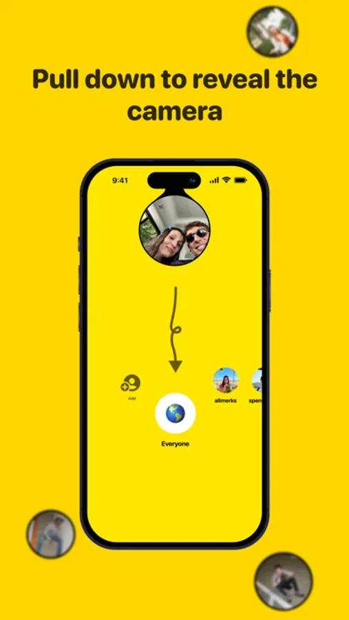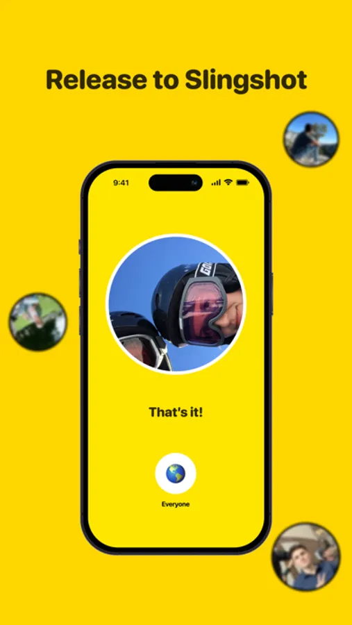 Slingshot is the quickest way to share moments with your friends. Just drag your finger down to reveal the camera, then release to instantly capture the picture and send it off.