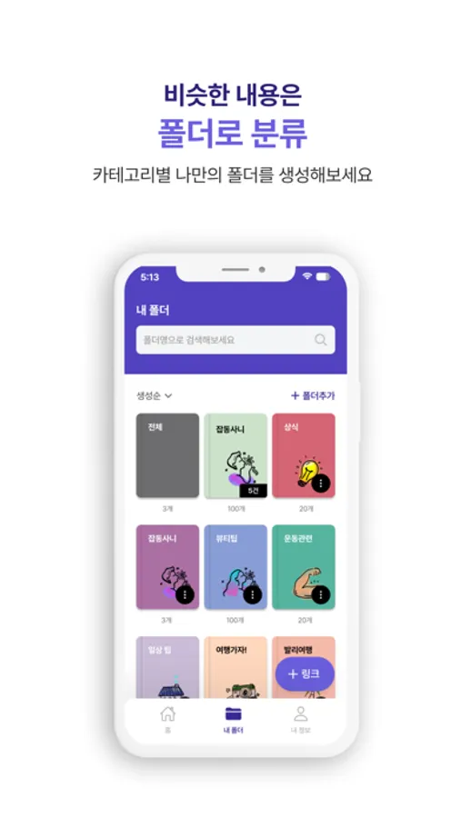 필요한 상황에 링크를 찾기 힘들지 않게 폴더별로 관리하고,