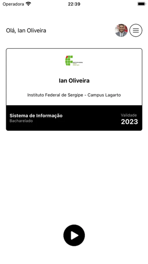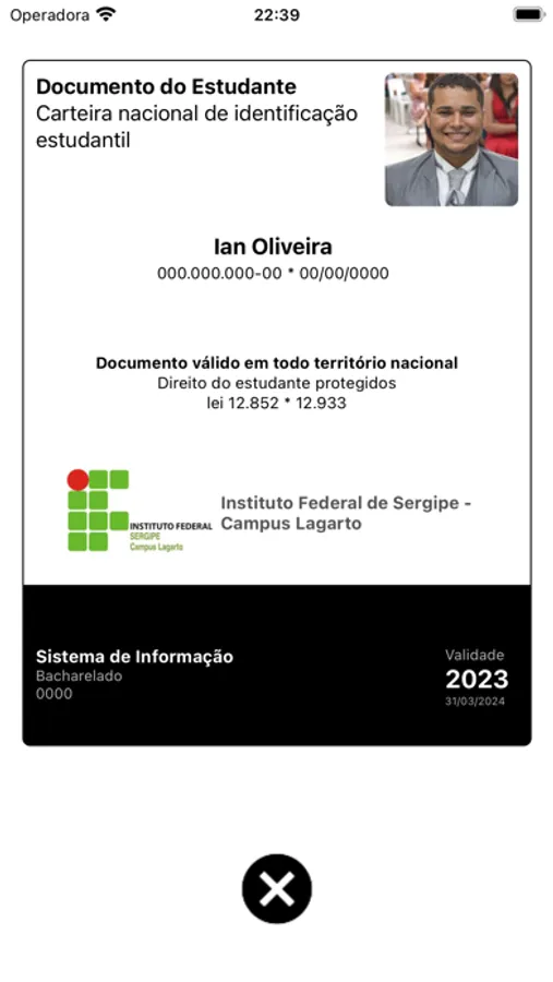 Aplicativo para informar os dados dos estudantes em forma de carteira estudantil.