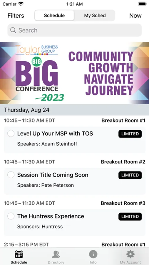 If you've already created a schedule online, you can log in to view it on your phone and make on-the-go changes. If this event is public, create an attendee account to instantly save your favorite sessions to your personal schedule.