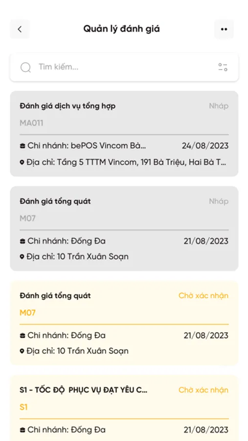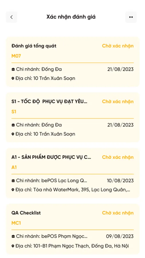 *** Theo dõi lịch sử đánh giá: Theo dõi đánh giá, xác nhận và phản hồi để nắm rõ hiện trạng trong quy trình vận hành tại các cửa hàng.