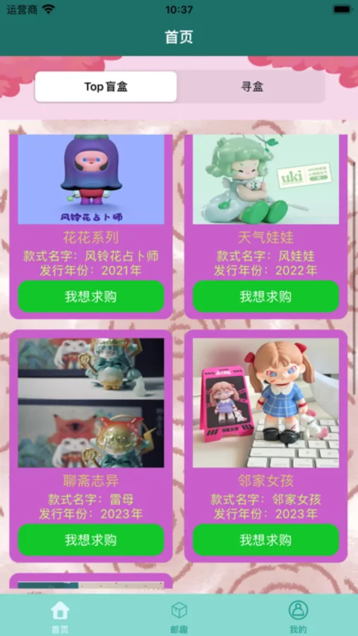 这款app是为了喜欢收集和购买盲盒的用户设计的,里面可以进行各种盲盒交易,包括绝版盲盒
