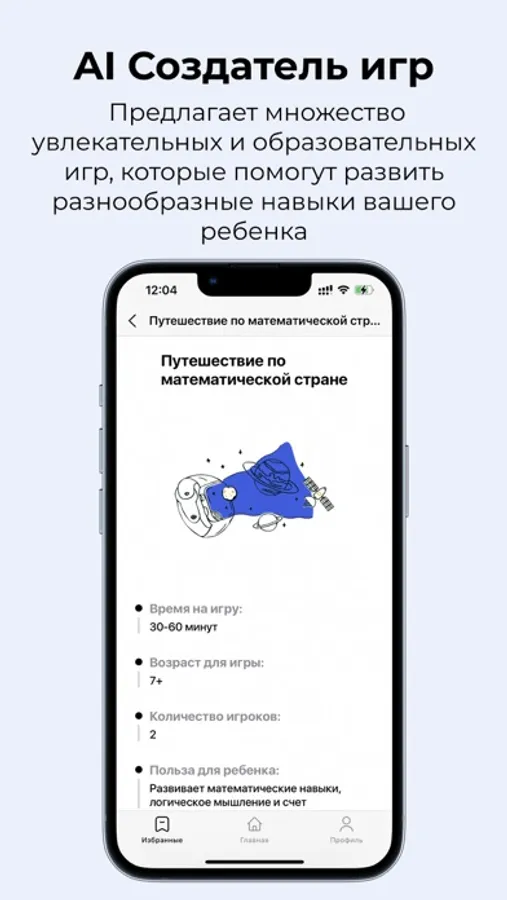 AI Создатель Игр: Развивайте творческие навыки вашего ребенка с помощью интерактивных и образовательных игр, созданных нашим AI Создателем Игр. Погружайтесь в волшебные миры и научные исследования вместе с вашим малышом.