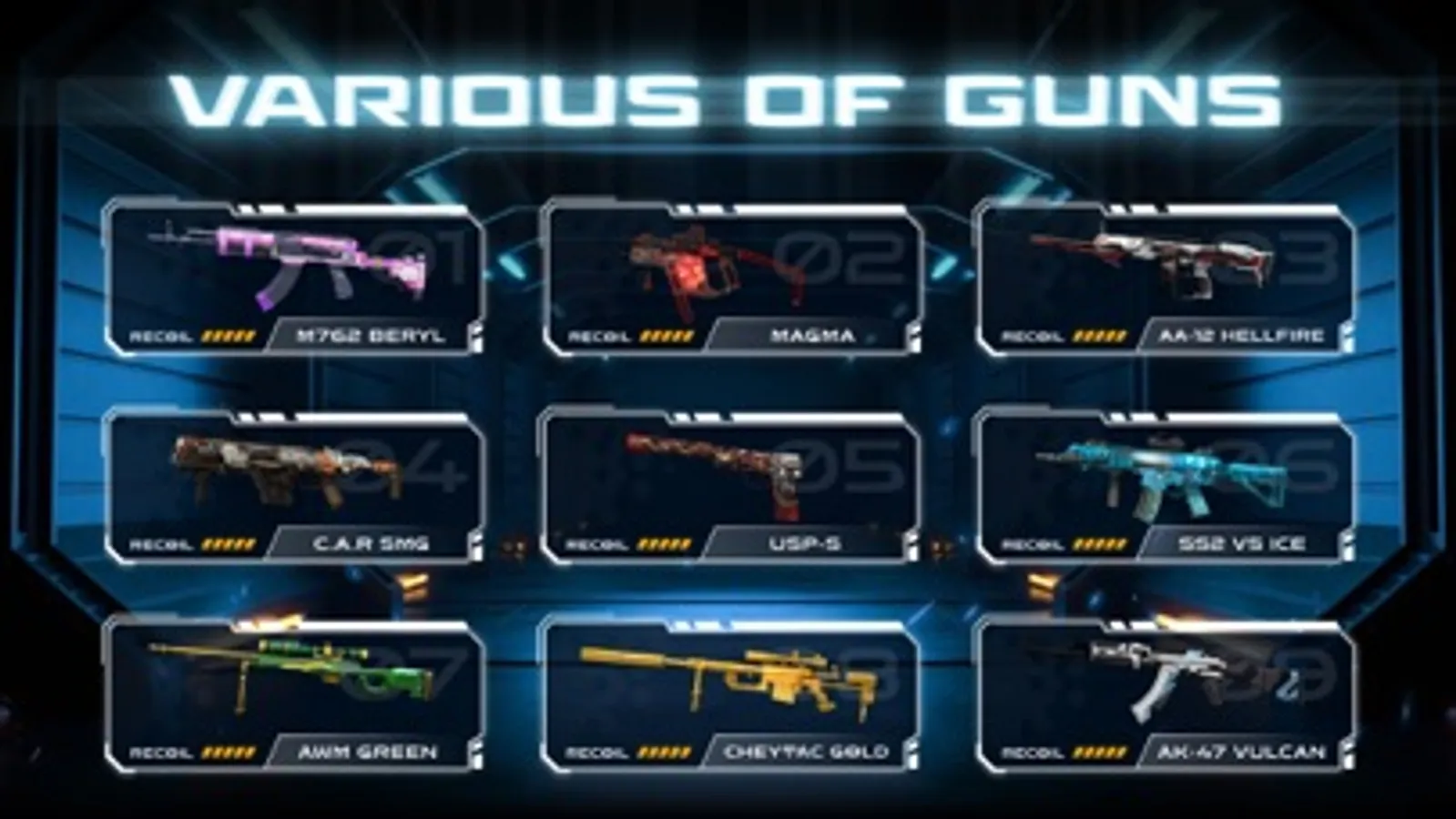 - More than 25+ gun skins AK Voltaic