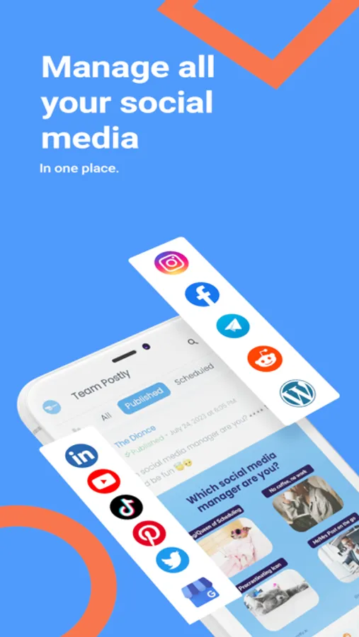 Write once, and publish everywhere. One-click publishing to Instagram, Facebook, LinkedIn, TikTok, and more.