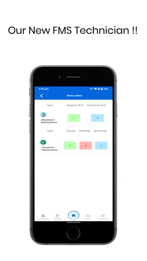 • Option to select material, enter root cause, observation, recommendation, and corrective action taken during breakdown maintenance.