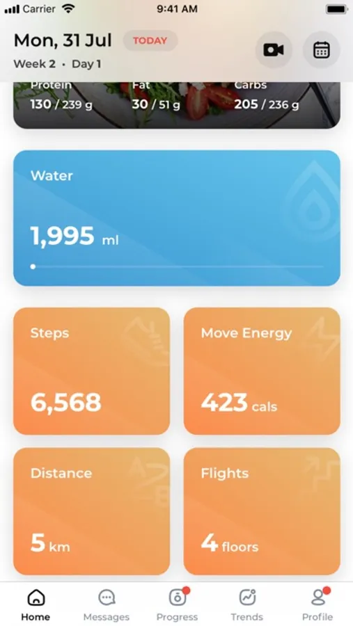 The app integrates with Apple Health to show your daily activity - distance, steps, active energy, and flights to help you better achieve your goals.