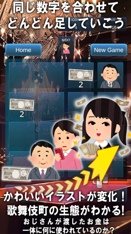 同じ数字を合わせると、かわいいイラストがどんどん変化!