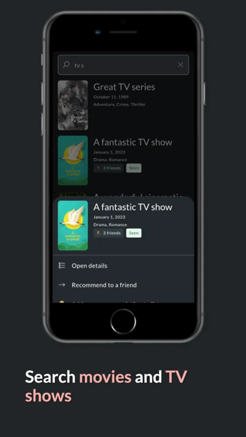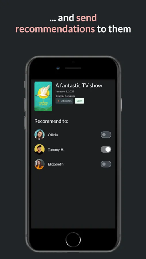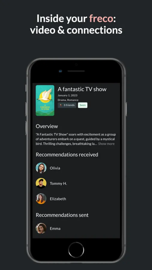 No more relying on random algorithms! freco is all about YOUR crew – your awesome friends who totally get your taste in flicks. They know what makes you tick, what thrills you, and what keeps you glued to the screen. Share your favorite movies and TV shows, and let the real experts – your friends – recommend the best stuff!