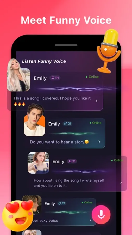 Welcome to Voice Chat, the ultimate app for sharing your funniest moments with the world! With Voice Chat, you can create and share your own audio recordings, whether you're singing a silly song, telling a joke, or just sharing a funny story. You can record audio up to one minute in length, making it easy to capture and share your most hilarious moments.