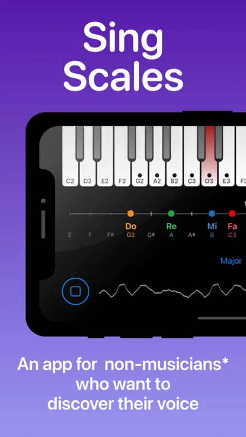 The Sing Scales app is purposefully built with non-musicians in mind. The user interface is designed to present musical scales in an interactive manner. The user gradually acquires understanding through experimentation. The app doesn’t expect the user to have pre-existing knowledge of music theory. Singing scales is just one piano key tap away — make the lowest naturally comfortable “Do” sound, tap on the highlighted piano key and start singing the scale right away. It doesn’t have to be more complicated that that.