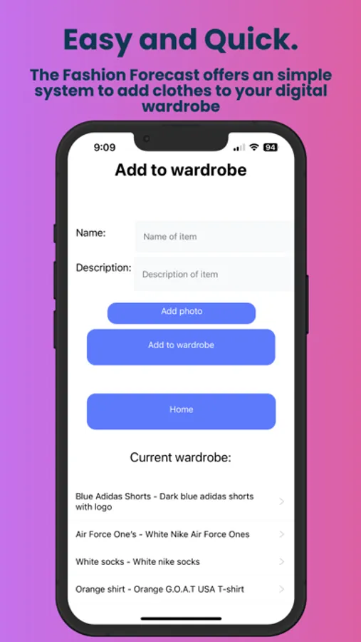 Fashion Forecast is an innovative, AI-powered mobile application that serves as your personalized digital wardrobe and fashion stylist, specifically designed to help you look your best every day, no matter the weather.