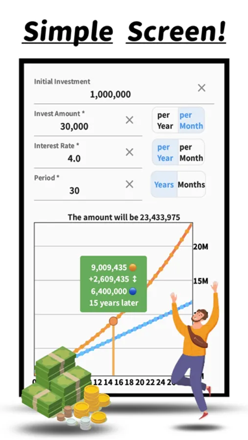 It is difficult to calculate compound interest with the human brain, but this app can calculate immediately. It works quickly on one screen, so it is easy to use.