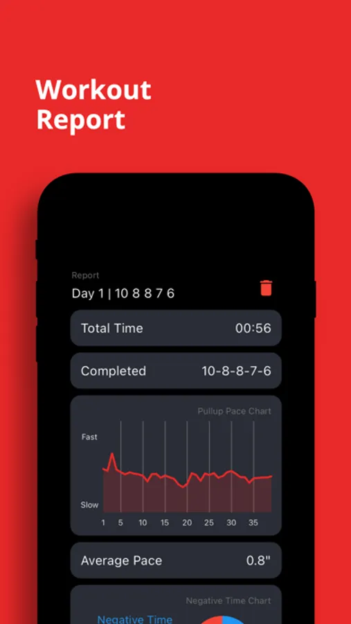 At the end of the exercise, it provides a report on the number, time, pace, and negative & positive exercise rates.