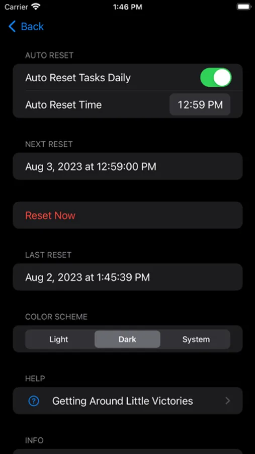 Enjoy the convenience of auto-resetting tasks each day, keeping your list refreshed and motivating you to complete tasks regularly. You have the flexibility to customize tasks, mark them as complete, and set automatic daily resets.
