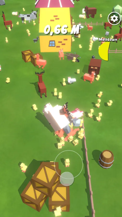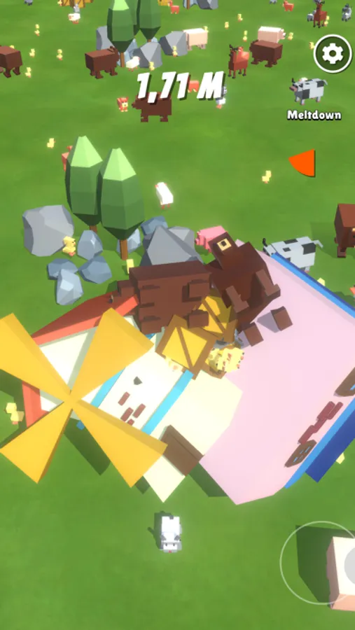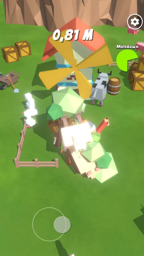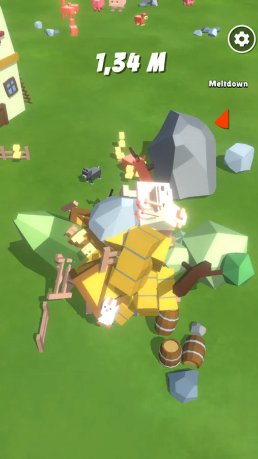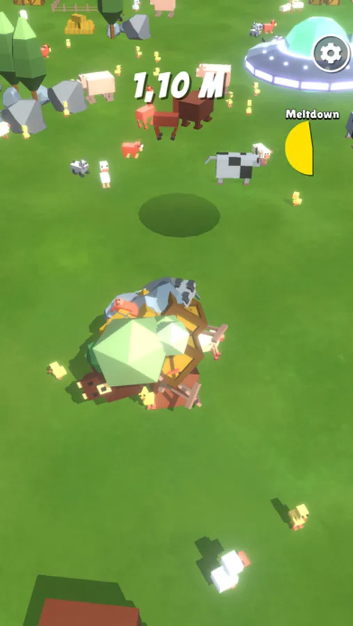 We roll and collect everything: Farm animals, gates, trees, rocks even the houses!