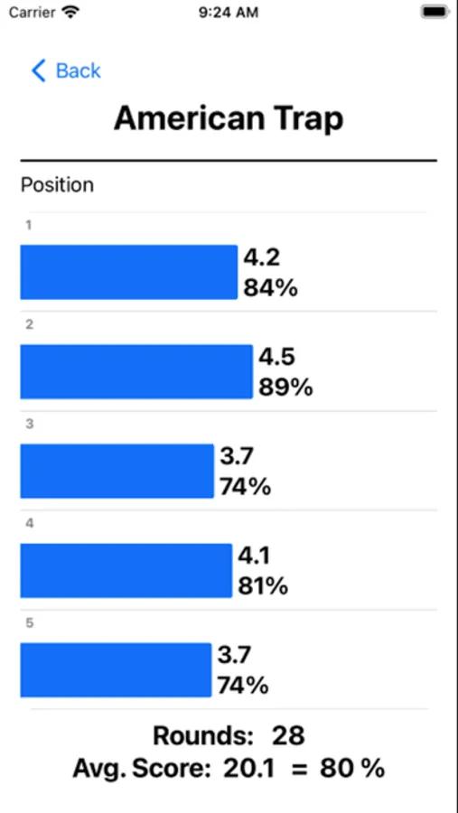 The "Stats" button graphically shows your average scoring by position for the Range selected and a detailed graph of performance over time to monitor improvement.