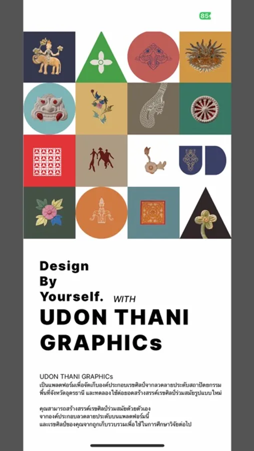 UDON THANI GRAPHICs เป็นแพลตฟอร์มเพื่อจัดเก็บองค์ประกอบเรขศิลป์จากลวดลายประดับสถาปัตยกรรมพื้นที่จังหวัดอุดรธานี และทดลองใช้ต่อยอดสร้างสรรค์เรขศิลป์ร่วมสมัยรูปแบบใหม่