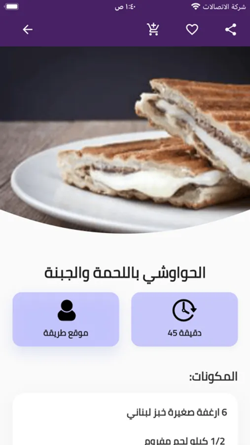 6. يمكن مشاركة الوصفة مع اصدقائك و اقربائك عبر التواصل الاجتماعي