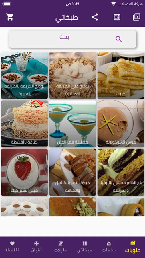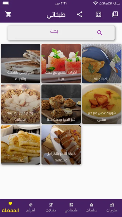 يحتوي على قائمة متنوعة من الوصفات واكلات سريعة واطباق جديدة.