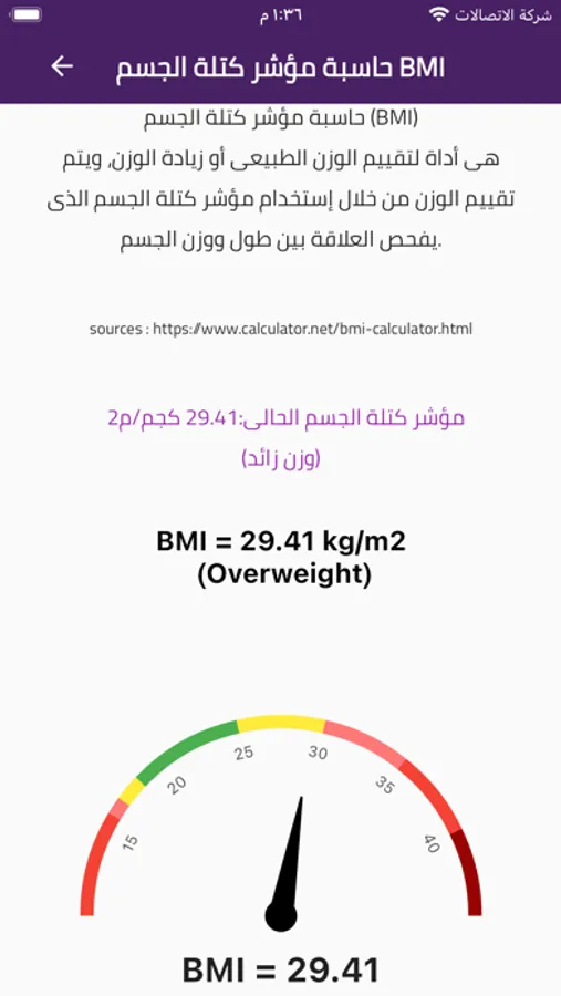 11.امكانية حساب مؤشر كتلة الجسم BMI