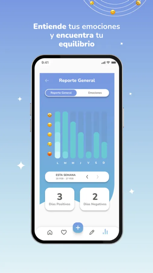 Recibe informes personalizados sobre tu bienestar y patrones emocionales. Obtén valiosas percepciones que promuevan el autoconocimiento permitiéndote realizar cambios positivos y llevar una vida más equilibrada.