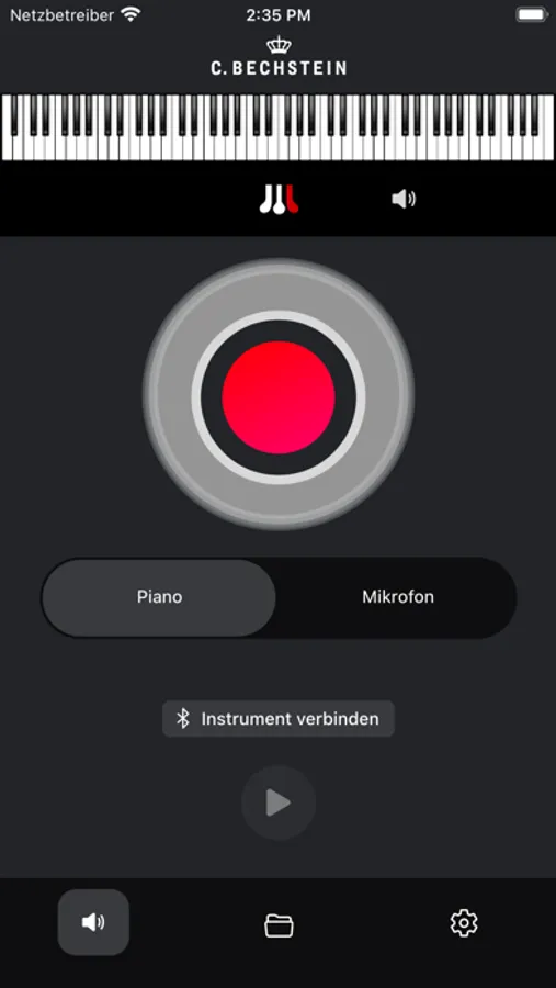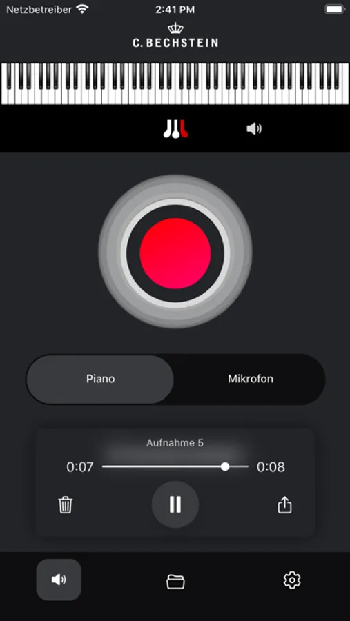 Music is meant to be shared. The Record app lets you easily capture your piano playing directly through the Connect feature of your C. Bechstein piano, using MIDI without requiring extra microphones. Whether you want to save special moments, track your learning progress, or share recordings with friends and family, Record makes it all possible.