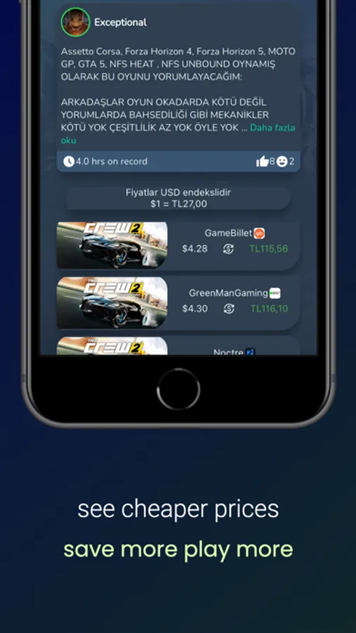 With our user-friendly interface, navigating through a vast array of games is a breeze. Immerse yourself in captivating game images, detailed descriptions, and genuine user reviews, making informed decisions has never been easier. But that's not all! Our unique feature lets you compare prices across multiple markets, ensuring you never pay more than the lowest available price.