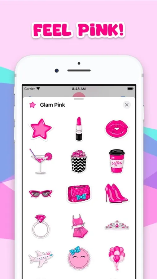 Glam up your conversations with these glamorous pink stickers. These stickers are designed to make you feel fabulous and confident. The cute and trendy icons are absolutely stunning, displaying various items, including sunglasses, lipstick, and clothing, all in a lovely pink color scheme.