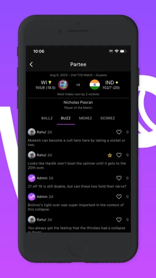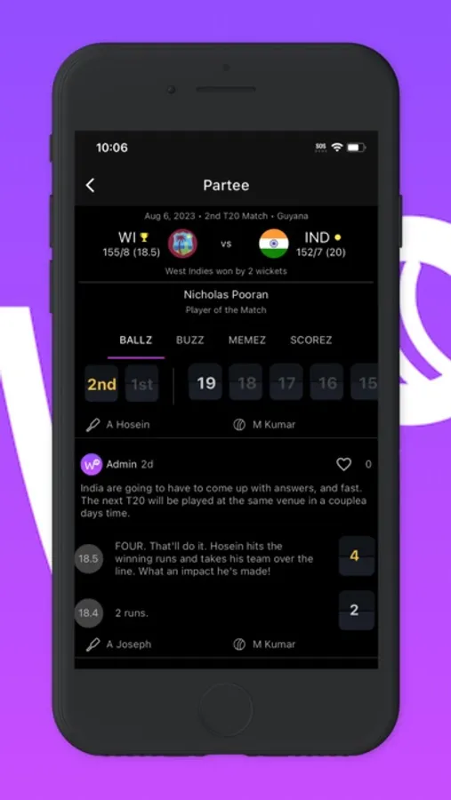 Follow along with live scores, banter with other fans and express yourself with memes. Join the Partee!