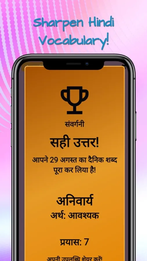 Are you someone who enjoys reading Hindi literature, or playing SHABD PAHELI-style games (like crossword and WORD SEARCH)? If so, then, you will love Samvargani. Samvargani is a DAILY word challenge game, where you GUESS AND LEARN a new Hindi word each day! Samvargani has added a modern twist to classic Hindi word brain-teasers. It is completely FREE and contains NO ADS. Challenge or collaborate with your friends and family to solve exciting puzzles; boost your Hindi vocabulary.