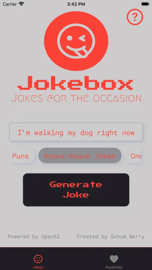 Welcome to JokeBox, the ultimate mobile app designed to tickle your funny bone and brighten your day with an endless supply of jokes, all powered by OpenAI's ChatGPT API. With Jokebox, you'll never be far from a good laugh, no matter the situation or mood!