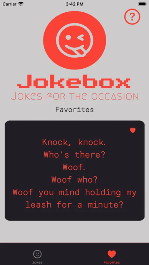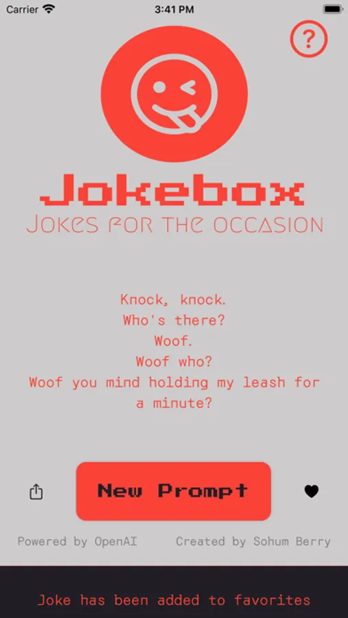 With Jokebox, you're just a tap away from a world of humor. Elevate your mood, entertain your friends, and liven up any gathering with a clever jest from JokeBox. Download the app now and unlock the comedic power of AI in the palm of your hand. Get ready to giggle, chuckle, and guffaw - Jokebox is here to ensure you're never short of laughter!