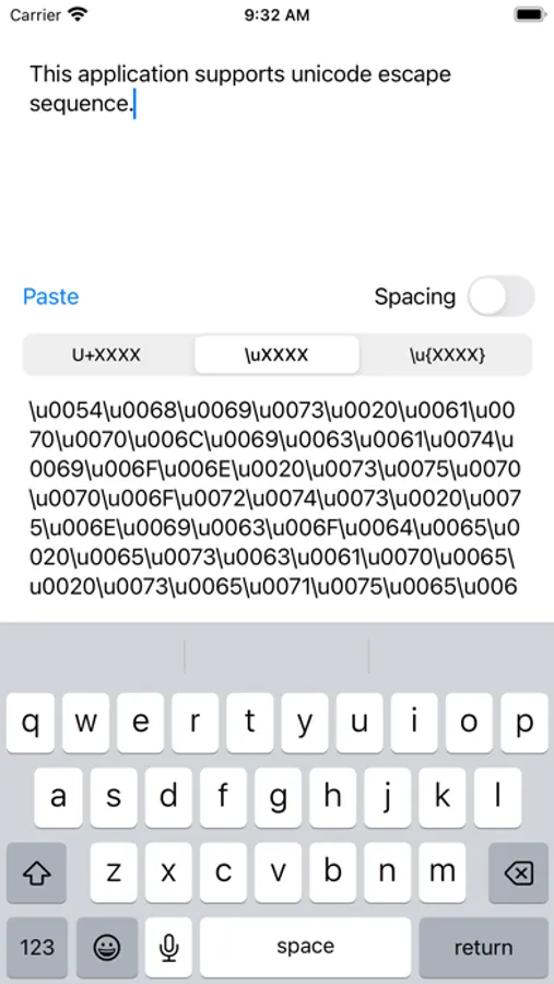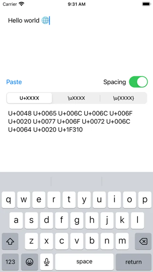 You can display the Unicode of entered or pasted strings.