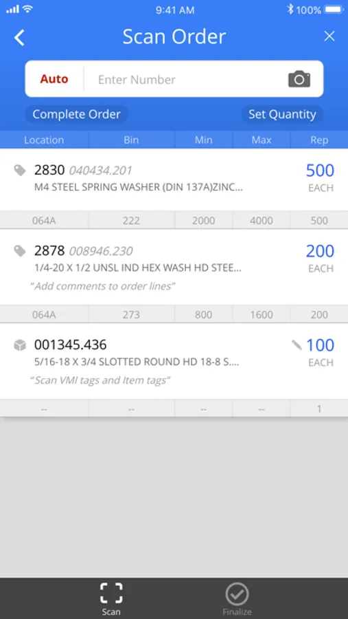 Distribution One’s VMI Scanner app makes it easy to manage your warehouse inventory. Use the app to take orders and submit them while on the go. A portable barcode scanner allows for quick entry of inventory items. While using VMI tags, your order details (quantity, location, etc.) can be quickly entered with just the scan of a barcode.
